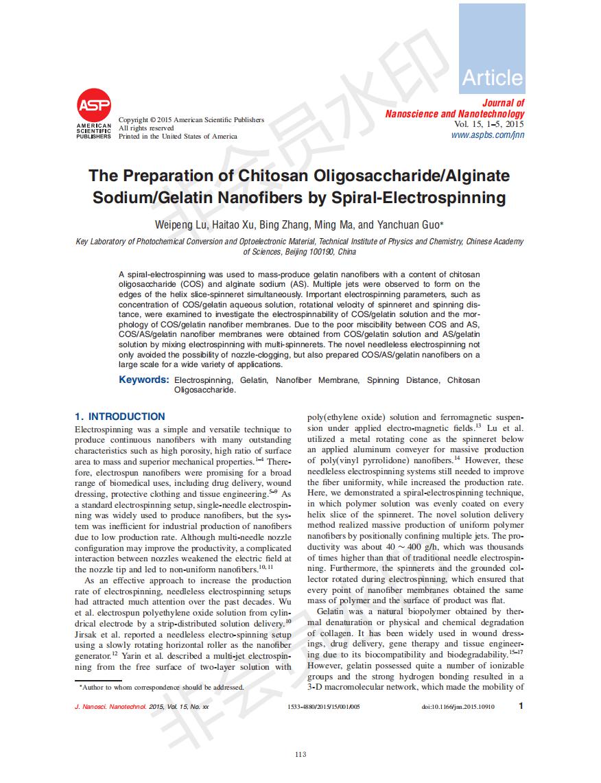 Preparation of chitosan oligosaccharide / sodium alginate / gelatin nanofibers based on spiral elect
