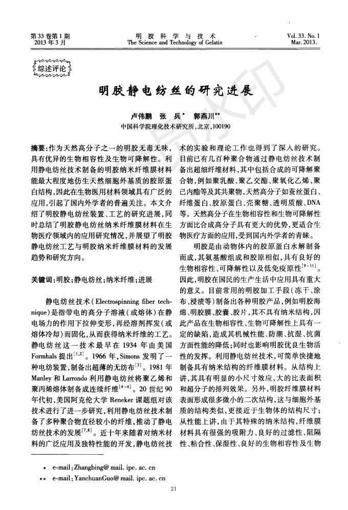 明膠靜電紡絲的研究進展