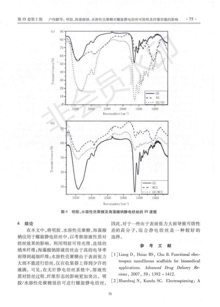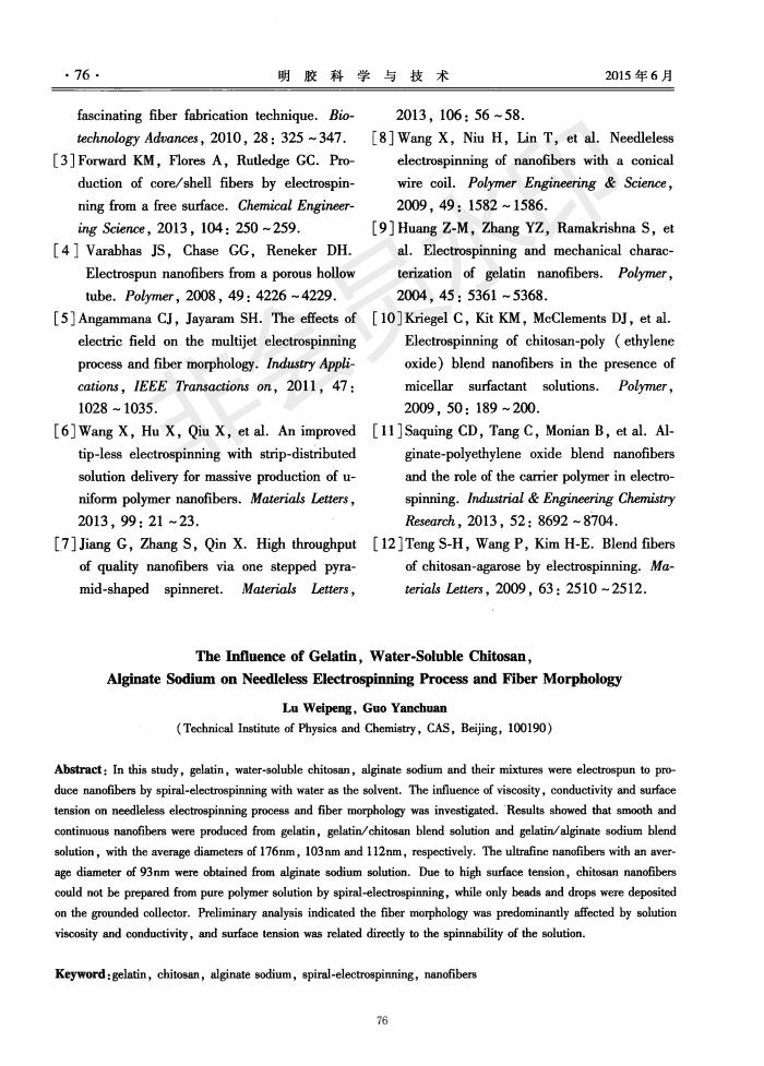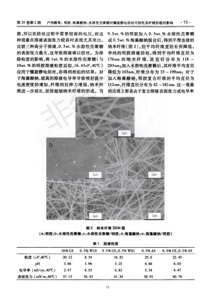 明膠、海藻酸鈉、水溶性殼聚糖對螺旋靜電紡絲可紡性及纖維形貌的影響