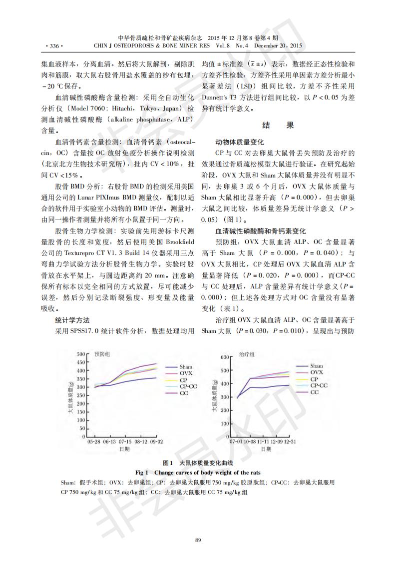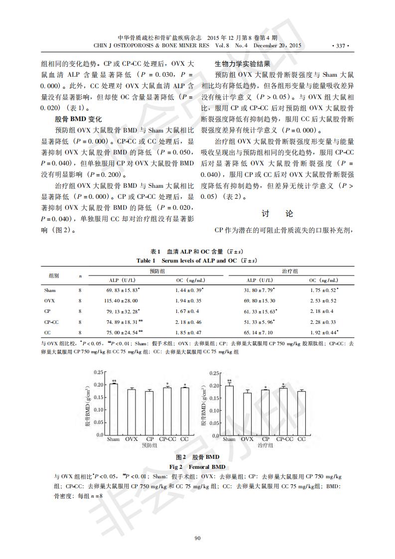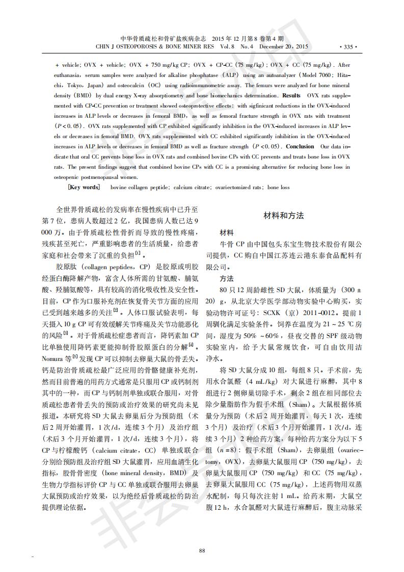 骨膠原肽與檸檬酸鈣對去卵巢大鼠骨丟失的預防及治療效果