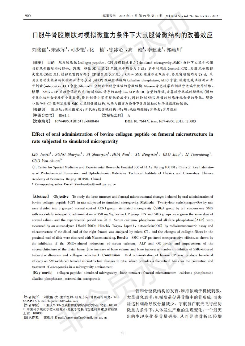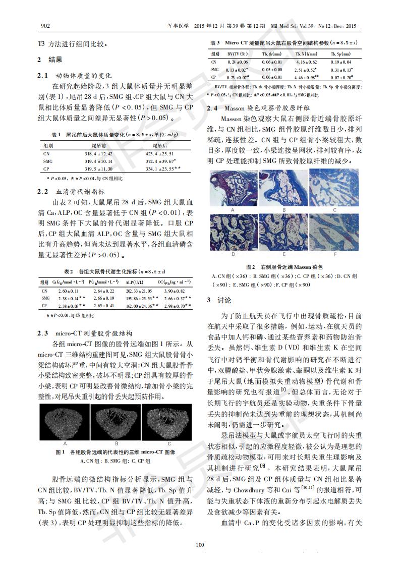 口服牛骨膠原肽對模擬微重力條件下大鼠股骨微結(jié)構(gòu)的改善效應(yīng)