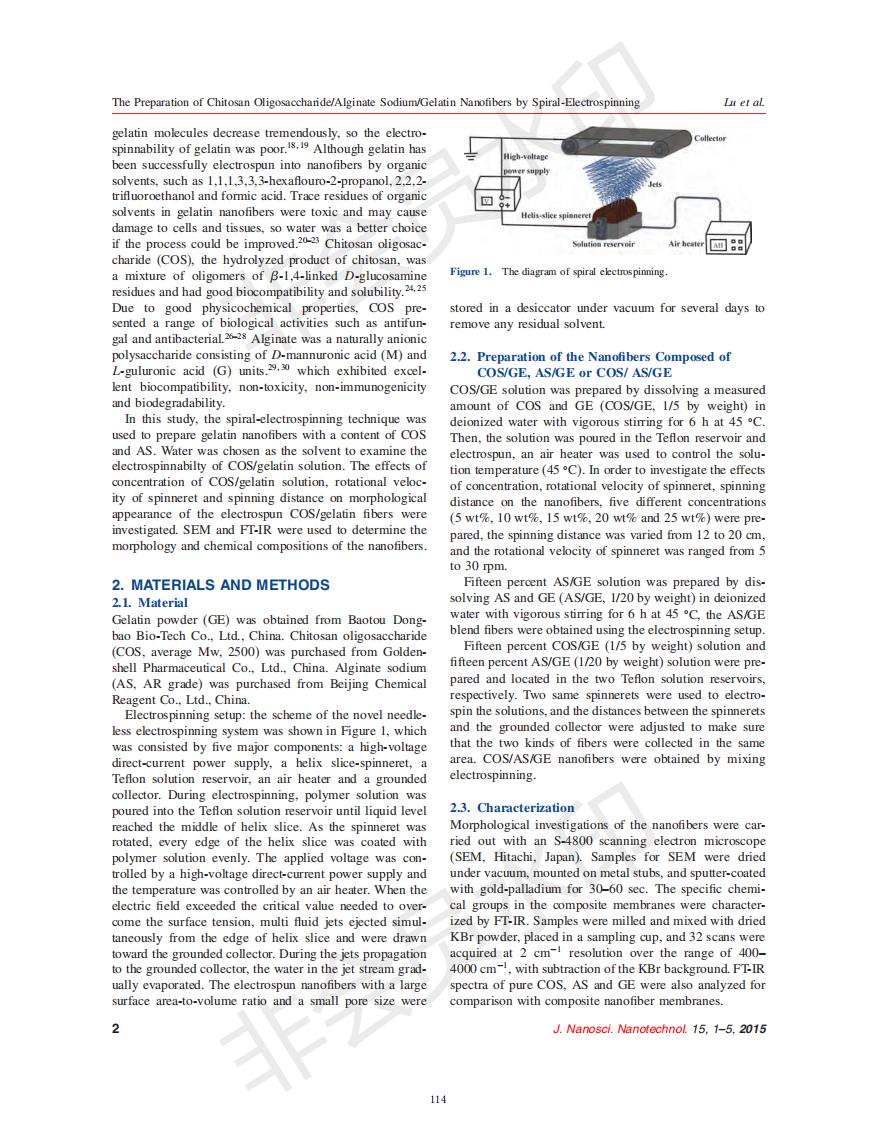 基于螺旋靜電紡絲技術的殼寡糖/海藻酸鈉/明膠納米纖維的制備研究