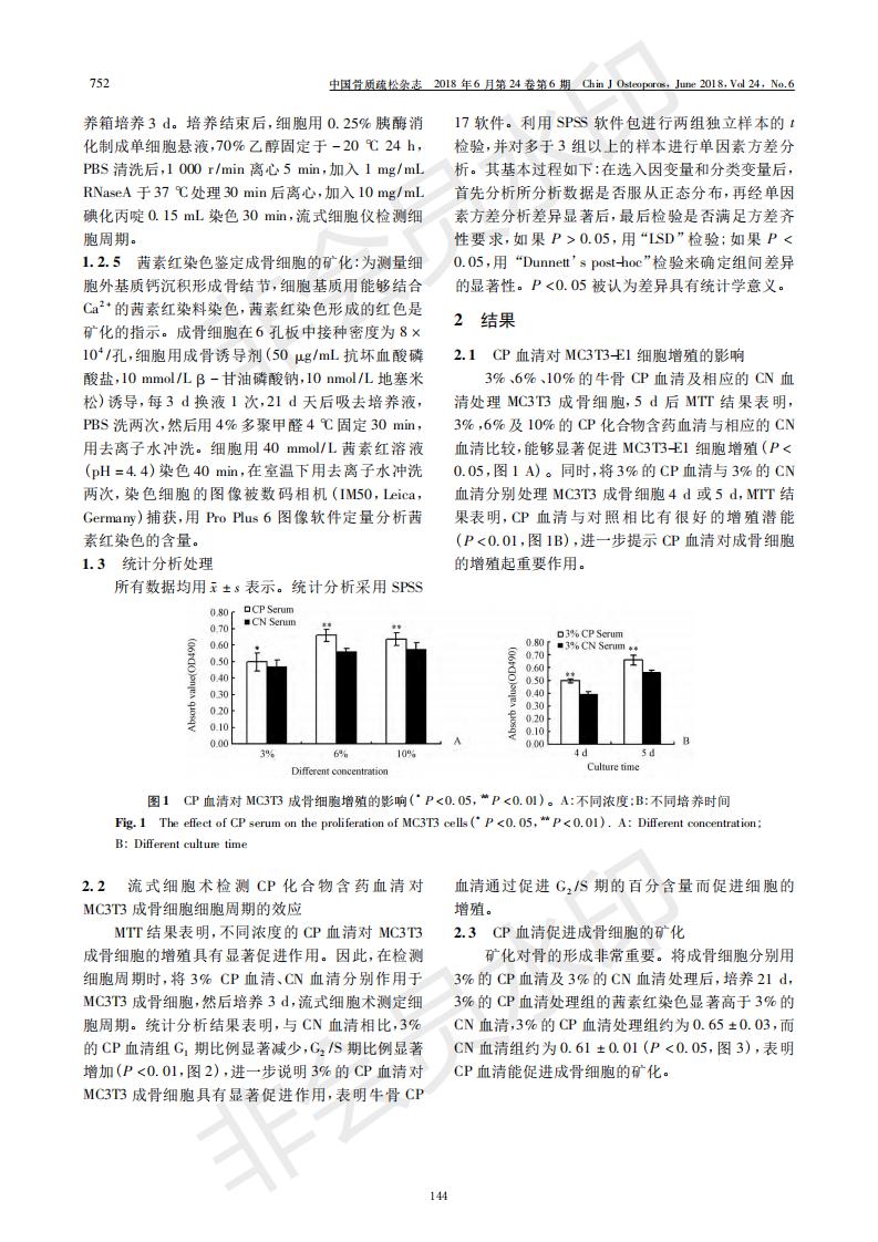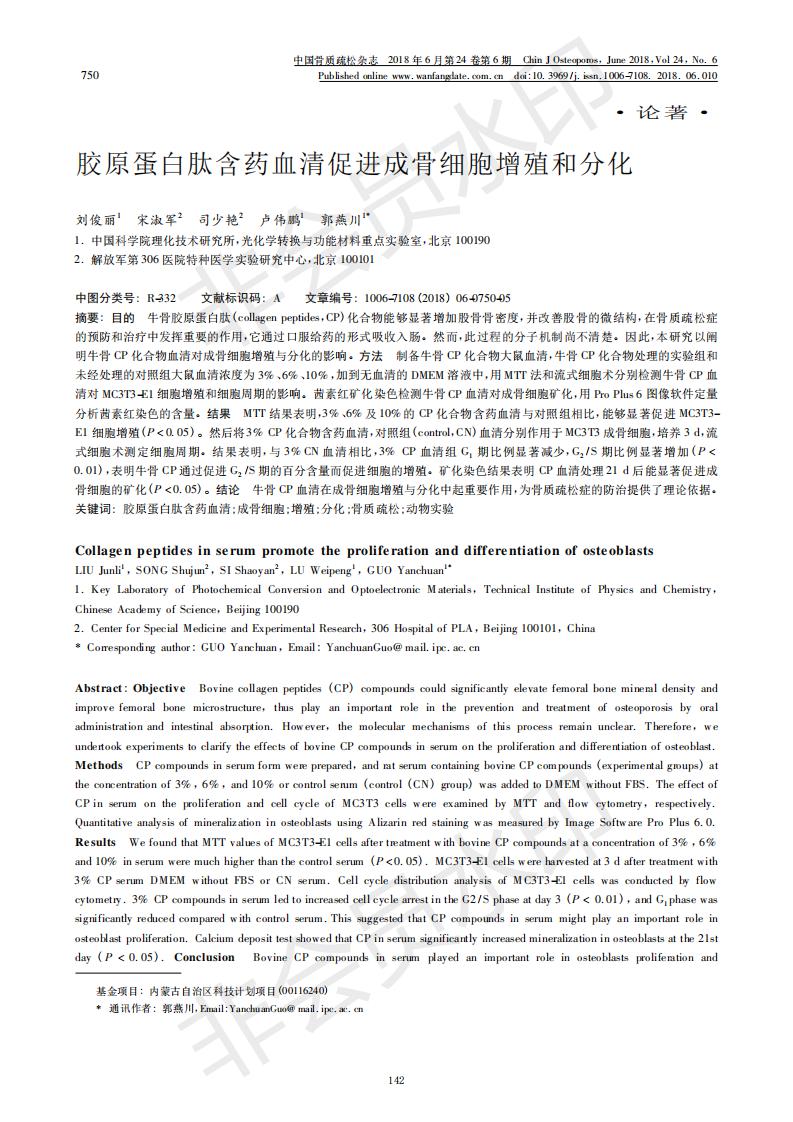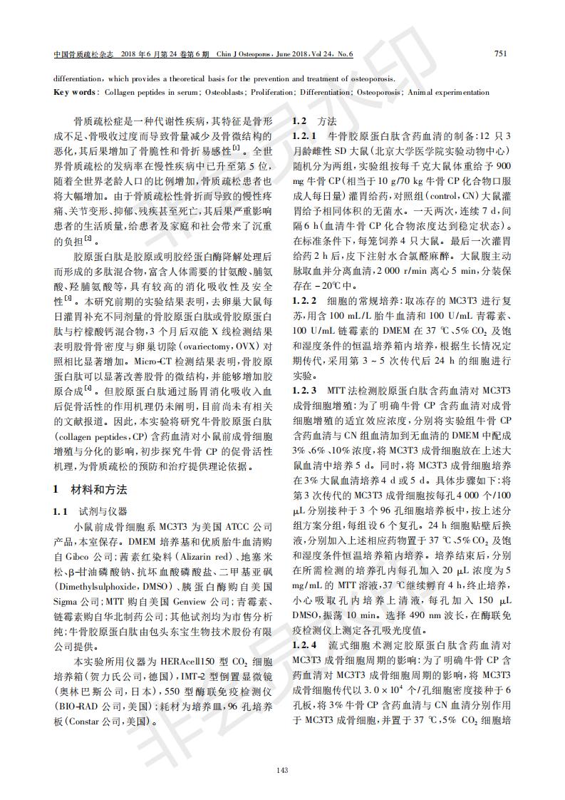膠原蛋白肽含藥血清促進成骨細胞增殖和分化